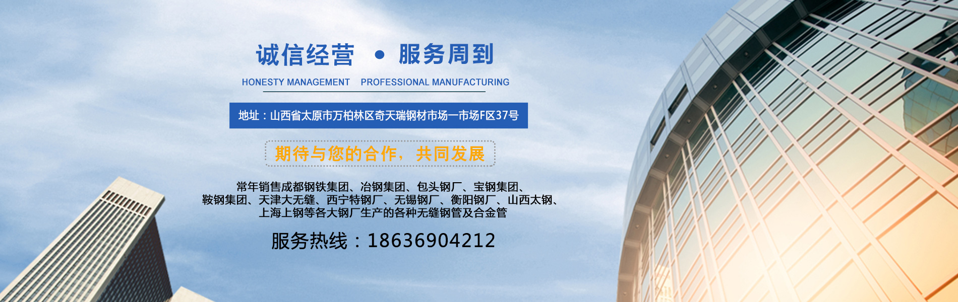 山西衡泰尚盈貿(mào)易有限責(zé)任公司是集生產(chǎn)加工經(jīng)營于一體的無縫鋼管、不銹鋼管、合金管、鍋爐管、液壓支柱管、方管、方矩管、不銹鋼板等的大型企業(yè),常年銷售成都鋼鐵集團(tuán)、冶鋼集團(tuán)、包頭鋼廠、寶鋼集團(tuán)、鞍鋼集團(tuán)、天津大無縫、西寧特鋼廠、無錫鋼廠、衡陽鋼廠、山西太鋼、上海上鋼等各大鋼廠生產(chǎn)的各種無縫鋼管及合金管。